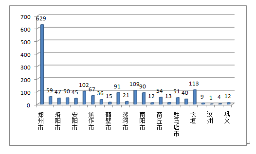2020年省轄市推薦登記的1531項(xiàng)成果中,鄭州市629項(xiàng),占24.92%;新鄉(xiāng)市102項(xiàng),占4.04%;洛陽市47項(xiàng),占1.86%;安陽市45項(xiàng),占1.78%;濮陽市36項(xiàng),占1.43%;開封市59項(xiàng),占2.34%;南陽市90項(xiàng),占3.57%;焦作市67項(xiàng),占2.65%;駐馬店市51項(xiàng),占2.02%;信陽市12項(xiàng),占0.48%;平頂山市50項(xiàng),占1.98%;許昌市91項(xiàng),占3.61%;商丘市54項(xiàng),占2.14%;鶴壁市15項(xiàng),占0.59%;濟(jì)源市40項(xiàng),占1.58%;漯河市21項(xiàng),占0.83%;三門峽市109項(xiàng),占4.32%;周口市13項(xiàng),占0.52%;長(zhǎng)垣縣113項(xiàng),占4.48%;汝州市1項(xiàng),占0.04%;鞏義市12項(xiàng),占0.48%;永城市9項(xiàng),占0.36%;滑縣4項(xiàng),占0.16%。