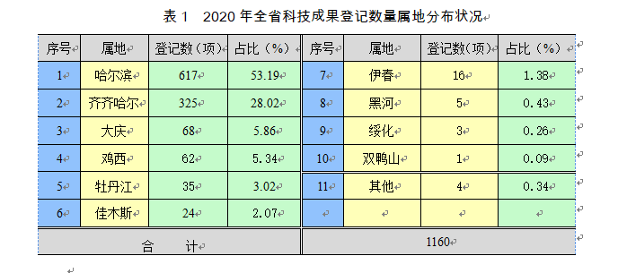 2020年度黑龍江省科技成果統(tǒng)計(jì)分析報(bào)告