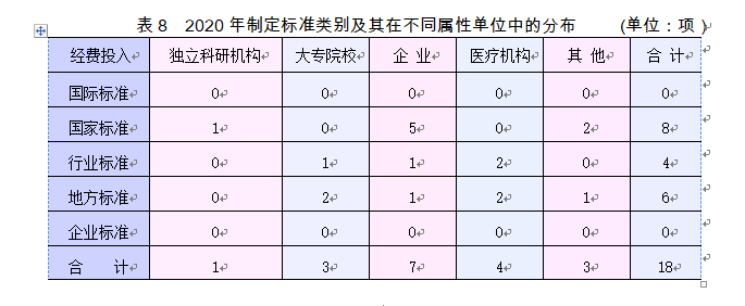 本年度登記的科技成果中,產(chǎn)出的各類(lèi)標(biāo)準(zhǔn)數(shù)為18項(xiàng),各類(lèi)標(biāo)準(zhǔn)在不同屬性單位的具體分布情況見(jiàn)表8。