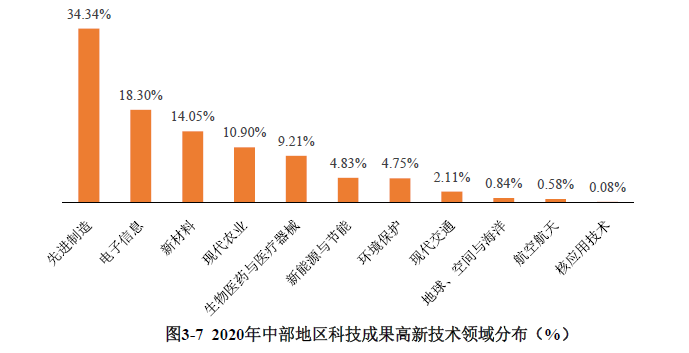 中部地區(qū)登記的高新技術(shù)成果中,非自然、生態(tài)、環(huán)境領(lǐng)域科技成果占比為80.37%,比上年增長4.65個百分點(詳見附表8)。