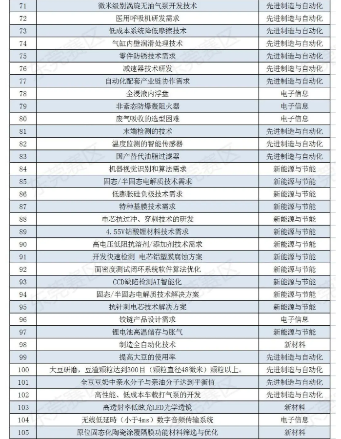 187項技術(shù)創(chuàng)新需求清單