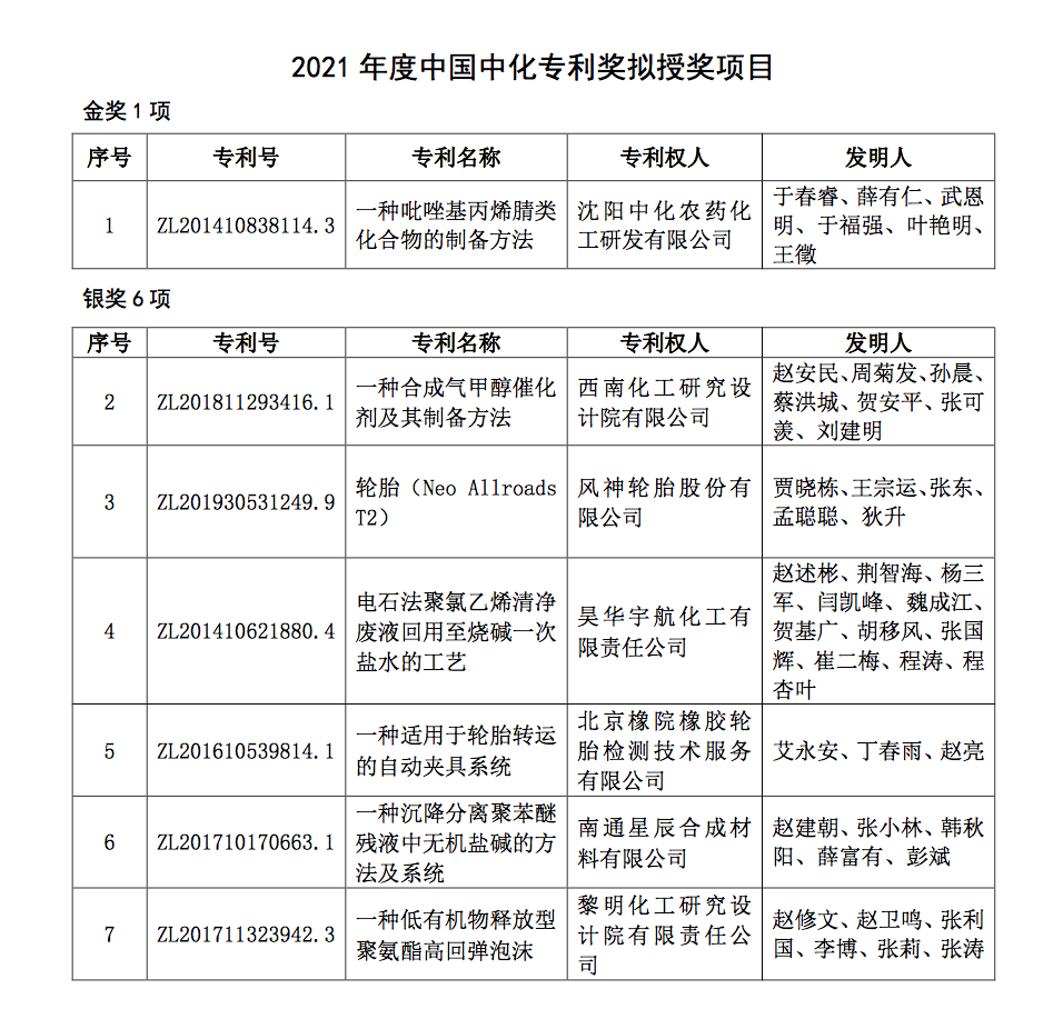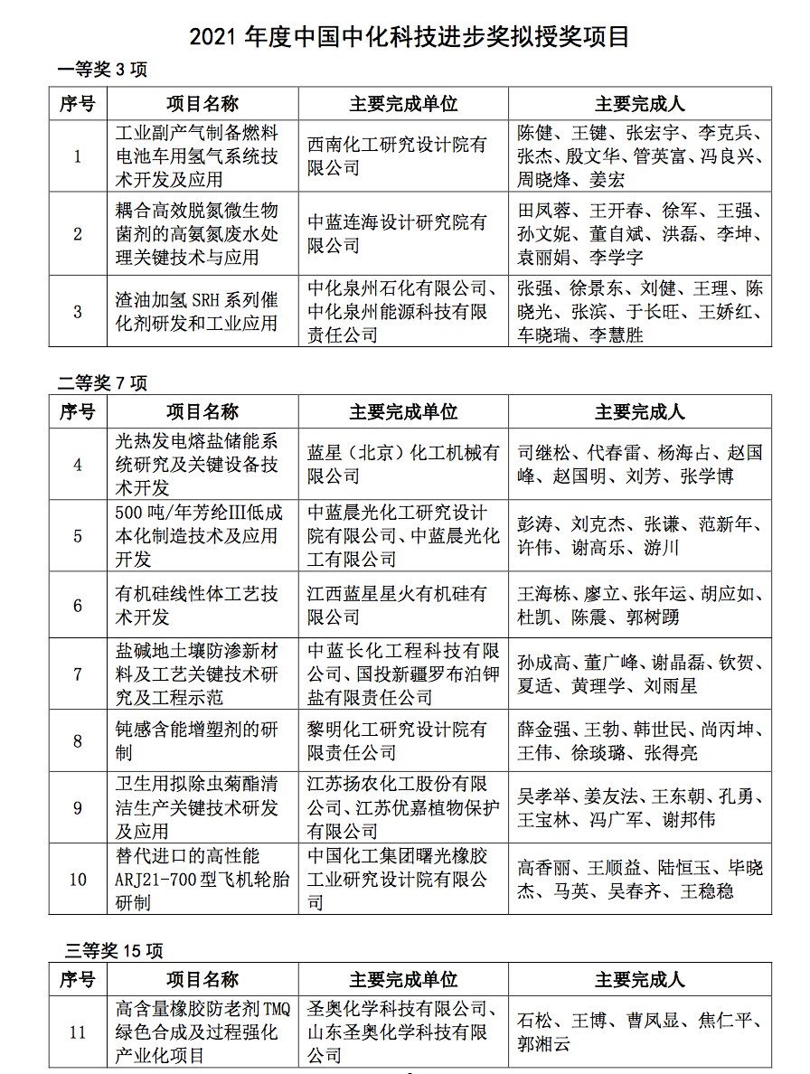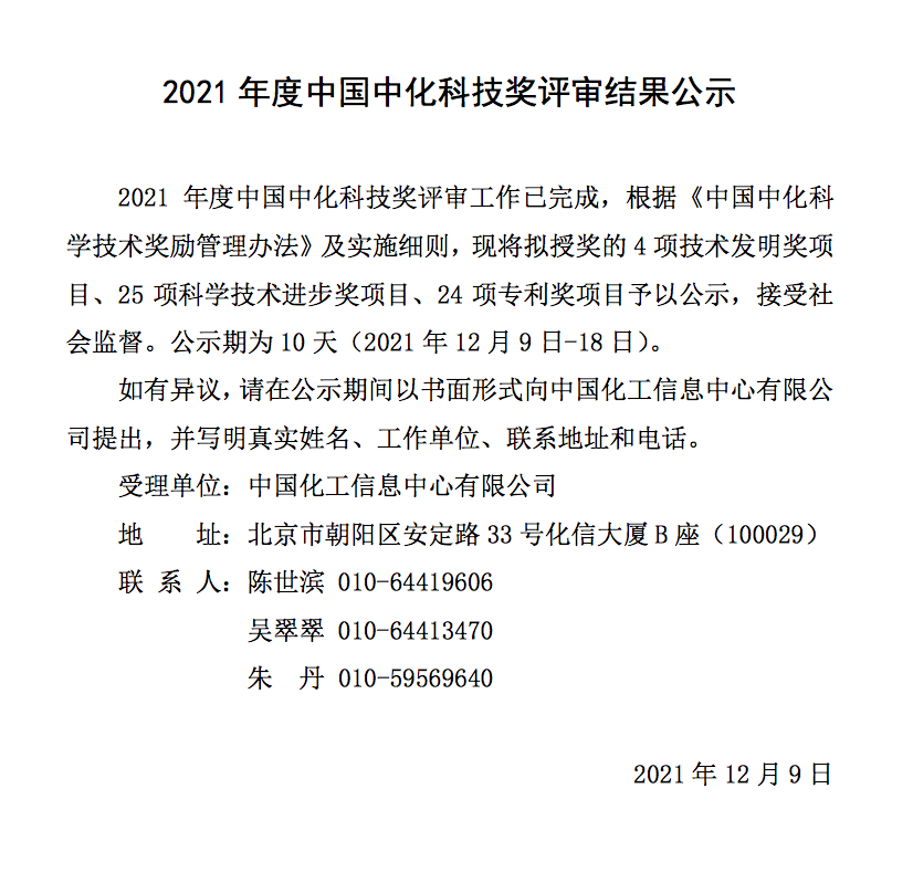 2021年度中國中化科技獎(jiǎng)評(píng)審結(jié)果公示