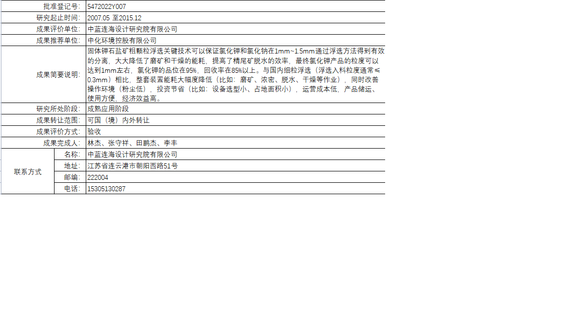 固體鉀鹽礦粗顆粒浮選關(guān)鍵技術(shù)開發(fā)