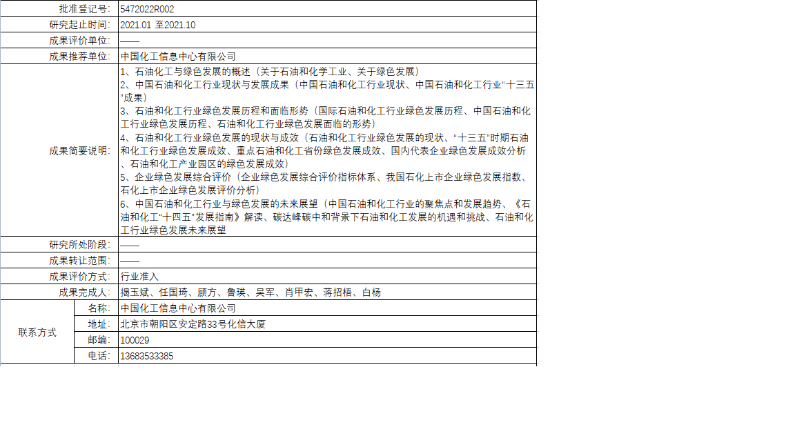 | 根據(jù)中國(guó)中化控股有限責(zé)任公司科技成果登記管理辦法,按照科技成果管理程序,現(xiàn)將中國(guó)中化控股有限責(zé)任公司登記的成果予以公告。對(duì)公告上登記的科技成果內(nèi)容持有異議者,可與中國(guó)中化控股有限責(zé)任公司科技成果登記中心聯(lián)系。其管理有效期(自公告之日起)為期7天。 |