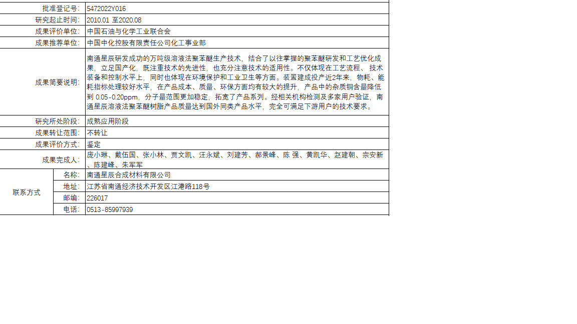 萬噸級溶液法聚苯醚(PPE)生產(chǎn)技術(shù)開發(fā)與應(yīng)用