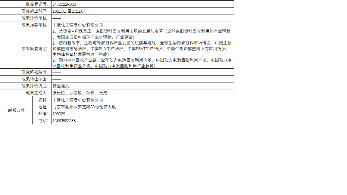 | 根據(jù)中國(guó)中化控股有限責(zé)任公司科技成果登記管理辦法,按照科技成果管理程序,現(xiàn)將中國(guó)中化控股有限責(zé)任公司登記的成果予以公告。對(duì)公告上登記的科技成果內(nèi)容持有異議者,可與中國(guó)中化控股有限責(zé)任公司科技成果登記中心聯(lián)系。其管理有效期(自公告之日起)為期7天。 |
