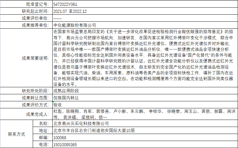 | 根據(jù)中國中化控股有限責(zé)任公司科技成果登記管理辦法,按照科技成果管理程序,現(xiàn)將中國中化控股有限責(zé)任公司登記的成果予以公告。對公告上登記的科技成果內(nèi)容持有異議者,可與中國中化控股有限責(zé)任公司科技成果登記中心聯(lián)系。其管理有效期(自公告之日起)為期7天。 |