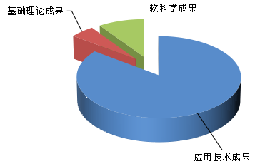 以應(yīng)用技術(shù)類為主,156項成果中,應(yīng)用技術(shù)成果133項,占85.26%;基礎(chǔ)理論成果8項,占5.13%;軟科學(xué)成果15項,占9.61% (見圖1、表1) 。