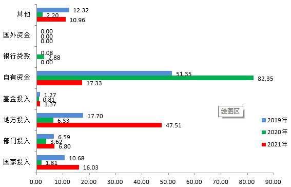 2021年累計投入6571萬元,其中,國家投入1053萬元,占16.03%;部門投入447萬元,占6.80%;地方投入3122萬元,占47.51%;基金投入90萬元,占1.37%;自有資金投入1139萬元,占17.33%;其他資金投入720萬元,占10.96%(見圖5)。