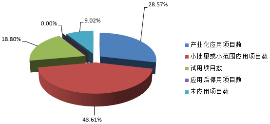 目前,已應(yīng)用的技術(shù)成果有96項,占應(yīng)用技術(shù)成果的72.18%;試用項目數(shù)25項,占應(yīng)用技術(shù)成果的18.80%;未應(yīng)用項目數(shù)12項,占應(yīng)用技術(shù)成果的9.02%(見圖8)。