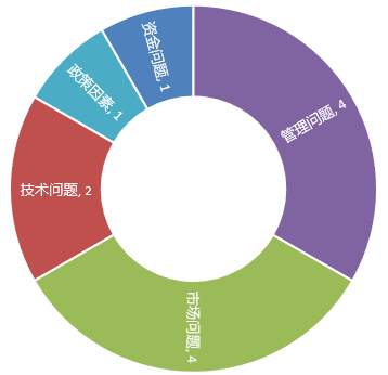 在133項應(yīng)用技術(shù)成果中,有12項未應(yīng)用。其中因市場問題或管理問題未應(yīng)用的分別有4項,有2項因技術(shù)問題未應(yīng)用,資金問題和政策因素各1項(見圖10)。