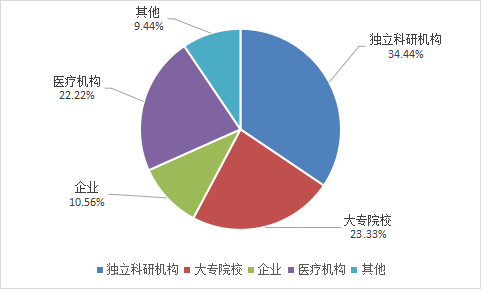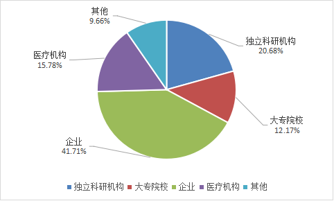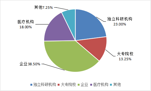 從統(tǒng)計(jì)結(jié)果看,企業(yè)、獨(dú)立科研機(jī)構(gòu)和醫(yī)療機(jī)構(gòu)是所登記成果中的科研開(kāi)發(fā)主體(三者之和約占79.50%)。