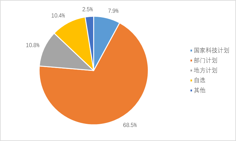 | 國家科技計(jì)劃 | 部門計(jì)劃 | 地方計(jì)劃 | 自選 | 其他 | 總計(jì) |