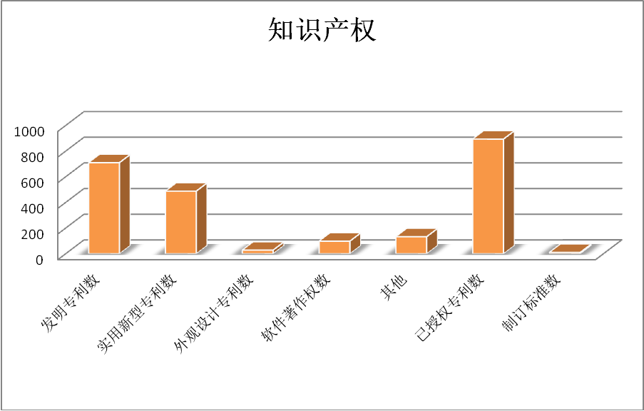 在所有成果中,共擁有知識(shí)產(chǎn)權(quán)1457件,其中發(fā)明專利為710件;實(shí)用新型專利為488件;外觀設(shè)計(jì)專利為28件;軟件著作權(quán)數(shù)為98件;其他133件。已授權(quán)專利數(shù)為894件;制定標(biāo)準(zhǔn)數(shù)共計(jì)11項(xiàng),其中:國(guó)際標(biāo)準(zhǔn)1項(xiàng)、地方標(biāo)準(zhǔn)6項(xiàng)、團(tuán)體標(biāo)準(zhǔn)3項(xiàng)、企業(yè)標(biāo)準(zhǔn)1項(xiàng)。