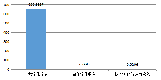 在本年度登記的應用技術成果中,已進行產(chǎn)業(yè)化應用的共有163項。其中產(chǎn)生了經(jīng)濟效益項目共有134項,占產(chǎn)業(yè)化應用成果數(shù)的82.21%。在自我轉(zhuǎn)化效益方面,收入為653.99億元,創(chuàng)造凈利潤53.79億元,實交稅金13.41億元,出口創(chuàng)匯43.02億元,節(jié)約資金8.05億元。在合作轉(zhuǎn)化方面,收入為7.8995億元,其中技術轉(zhuǎn)讓收入65萬元。技術許可收入206.00萬元,其中知識產(chǎn)權技術轉(zhuǎn)讓收入206萬元。