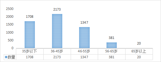 在所登記的447項科技成果中,按科技成果完成人員年齡統(tǒng)計:35歲以下1708人,36-45歲2173人,46-55歲1347人,56-65歲381人,65歲以上20人。從年齡結構分布看,55歲以下的科研人員為5228人次,占全部登記成果完成人總數(shù)的92.88%。
