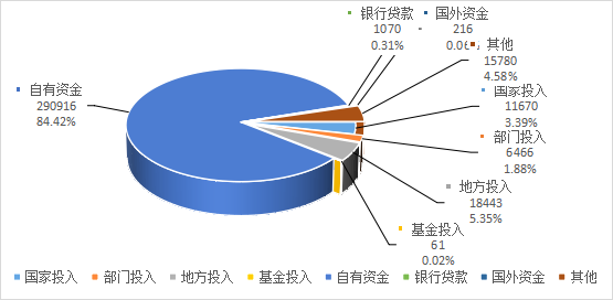 在本年登記的科技成果中,經(jīng)費實際投入額共計344622萬元,其中:國家投入11670萬元,占3.39%;部門投入6466萬元,占1.88%;地方投入18443萬元,占5.35%;基金投入61萬元,占0.02%;自有資金290916萬元,占84.42%;銀行貸款1070萬元,占0.31%;國外資金216萬元,占0.06%;其他15780萬元,占4.58%。其中自有資金在總資金投入中占有較大的比重。