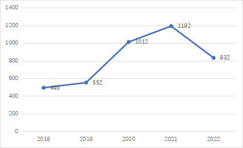 圖1-1 2018-2022年度登記成果數(shù)量