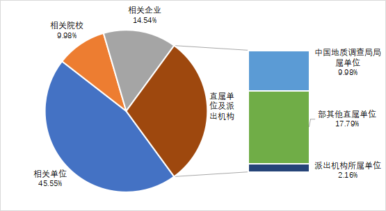 有249項(xiàng)成果由部直屬單位及派出機(jī)構(gòu)登記,占登記總量的29.93%,其中,有83項(xiàng)成果由中國(guó)地質(zhì)調(diào)查局局屬單位登記,占登記總量的9.98%,有148項(xiàng)成果由部其他直屬單位登記,占登記總量的17.79%,有18項(xiàng)成果由派出機(jī)構(gòu)所屬單位登記,占登記總量的2.16%。
