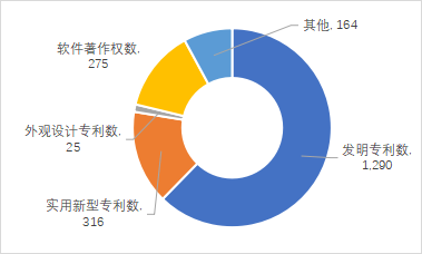 2022年度登記的科技成果共產(chǎn)出知識(shí)產(chǎn)權(quán)2070項(xiàng),其中,已授權(quán)專利數(shù)1227項(xiàng)。從知識(shí)產(chǎn)權(quán)類型看,發(fā)明專利為主要類型,占知識(shí)產(chǎn)權(quán)總量的62.32%;其次為實(shí)用新型專利和軟件著作權(quán),分別占知識(shí)產(chǎn)權(quán)總量的15.27%和13.29%。