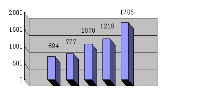 應(yīng)用項(xiàng)目數(shù) | 524 | 565 | 775 | 918 | 1305 |