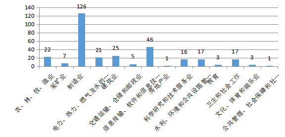 從成果應(yīng)用行業(yè)來看,主要集中在制造業(yè)(126項)、信息傳輸、軟件和信息技術(shù)服務(wù)業(yè)(46項)、建筑業(yè)(25項)、農(nóng)林牧漁業(yè)(22項)、電力熱力燃氣及水的生產(chǎn)和供應(yīng)業(yè)(21項)、水利、環(huán)境和公共設(shè)施管理業(yè)(17項)、衛(wèi)生和社會工作(17項)、科學研究和技術(shù)服務(wù)業(yè)(16項)(圖6)。