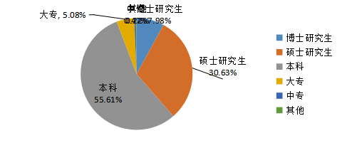 從文化程度來看,博士研究生322人,碩士研究生1236人,本科2244人,大專205人,中專19人,其他9人。