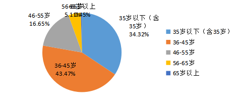 從年齡結(jié)構(gòu)來看,35歲以下1385人,36-45歲1754人,46-55歲672人,56-65歲206人,65歲以上18人。