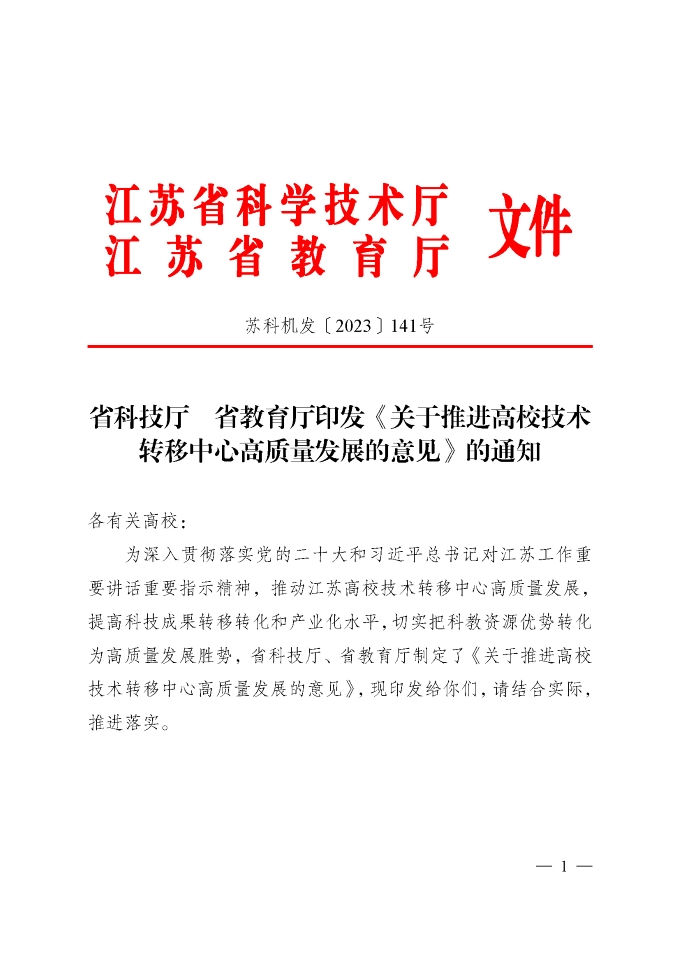 江蘇|《關(guān)于推進(jìn)高校技術(shù)轉(zhuǎn)移中心高質(zhì)量發(fā)展的意見(jiàn)》的通知